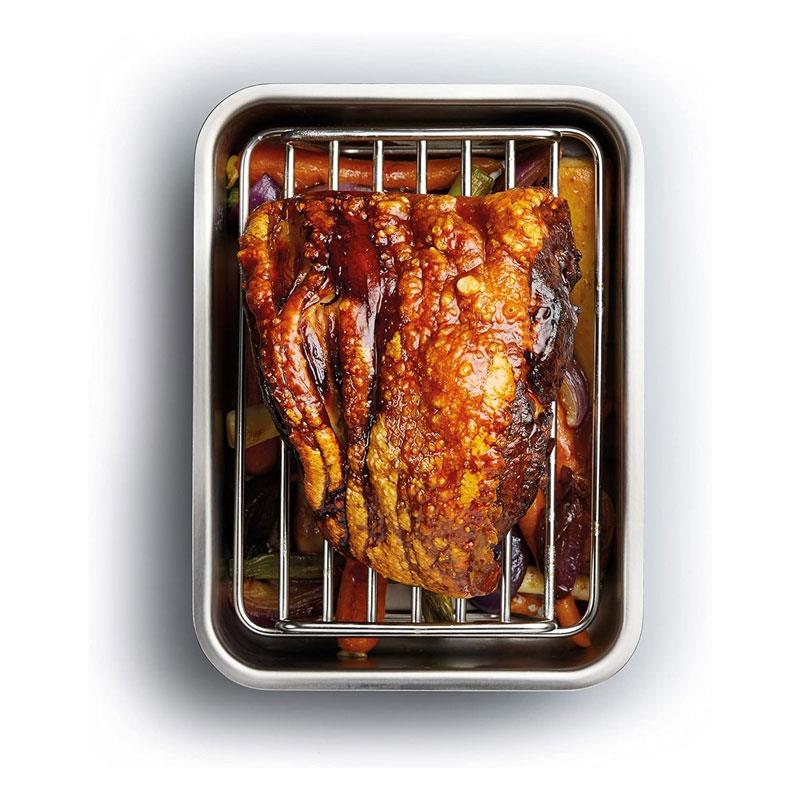 Take your Sunday roast to the next level with the MasterClass Small Stainless Steel Roasting Rack (23 x 16.5 x 6.5cm) – a sturdy, versatile rack designed to deliver crisp, juicy meat and healthier meals. Crafted from premium, warp-resistant stainless steel, this compact roasting rack lifts meat and poultry above the fat, letting it drain away for cleaner, leaner results – or perfect gravy if you prefer indulgence!
