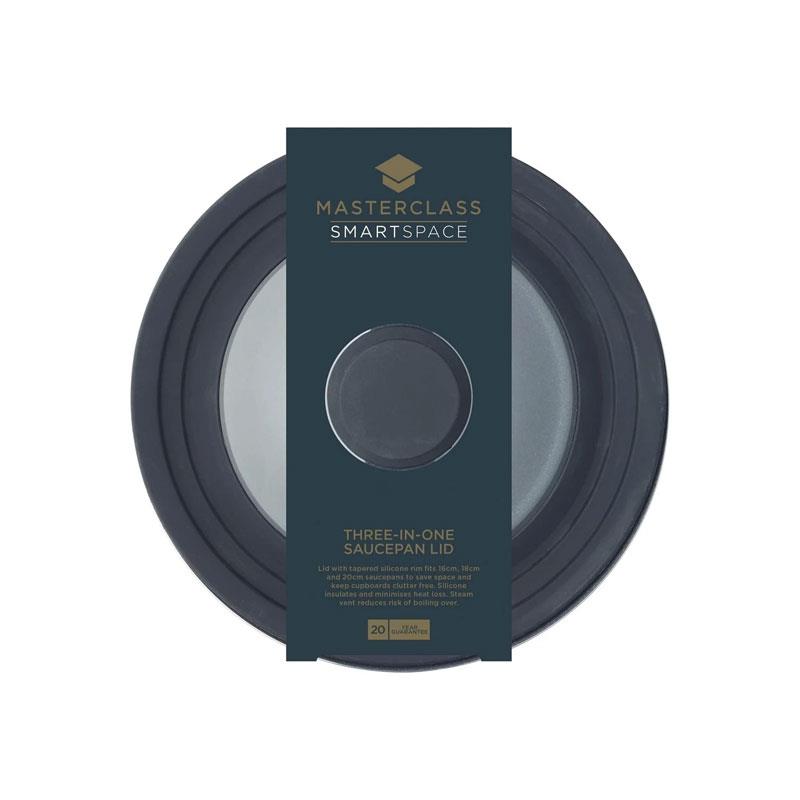 MasterClass Smart Space 3-In-1 Saucepan Lid Glass And Heat-Resistant Silicone 16cm/18cm/20cm Black