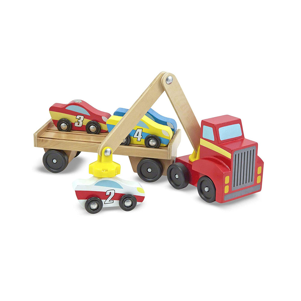 Melissa & Doug Magnetic Car Loader Wooden Toy Set