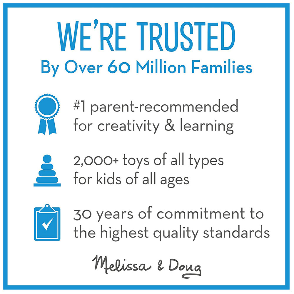 • “THE GOLD STANDARD IN CHILDHOOD PLAY”:  Melissa & Doug has been creating wonderfully designed imagination- and creativity-sparking toys for almost 30 years, and NBC News in the United States deems them “the gold standard in early childhood play.”
