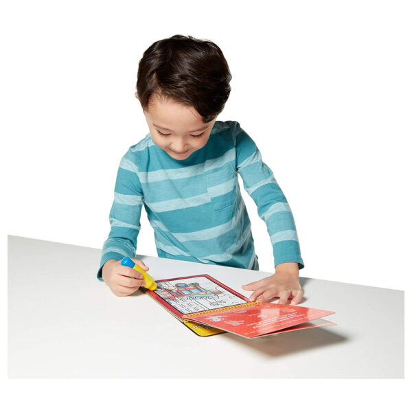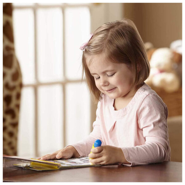 No-mess painting for kids! This exciting paint-with-water coloring book includes four reusable pages and a refillable water pen. Simply use the pen to color in each scene–details and vibrant colors appear with every stroke! Then let the page dry to erase the pictures and fill it in again and again. This vehicle-themed book includes four scenes to color and a search-and-find activity for each scene. The chunky-sized water pen is easy for kids to hold and stores neatly right on the front cover, so Water WOW books make ideal travel activity books and travel toys for kids!