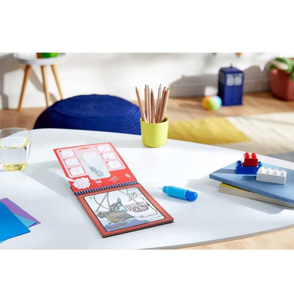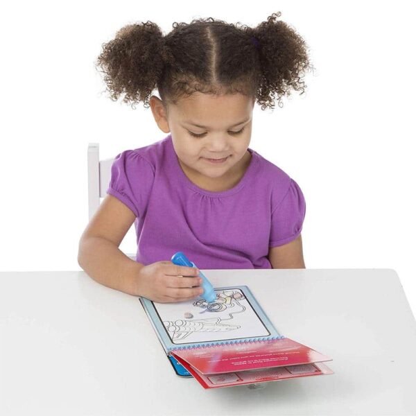 • This activity book comes with a chunky-sized water pen designed for smaller hands to easily grasp and fill. The compact, spiral-bound format is great for travel.