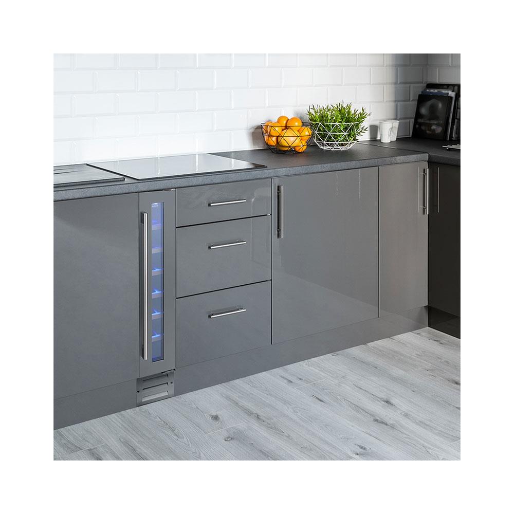 This Montpellier WC7X wine cooler is perfect for storing your favourite wines. Holding a total of 7 bottles. With a temperature range from 2°c to 20°c, the WC7X holds seven 75cl Bordeaux style bottles at the optimum temperature. The anti-vibration compressor ensures that the sediment remains still and your wine stays in tip top condition. Additional features include a touch control panel, beech shelving, blue LED lighting and fingerprint proof stainless steel, adding that extra touch of luxury to your home.