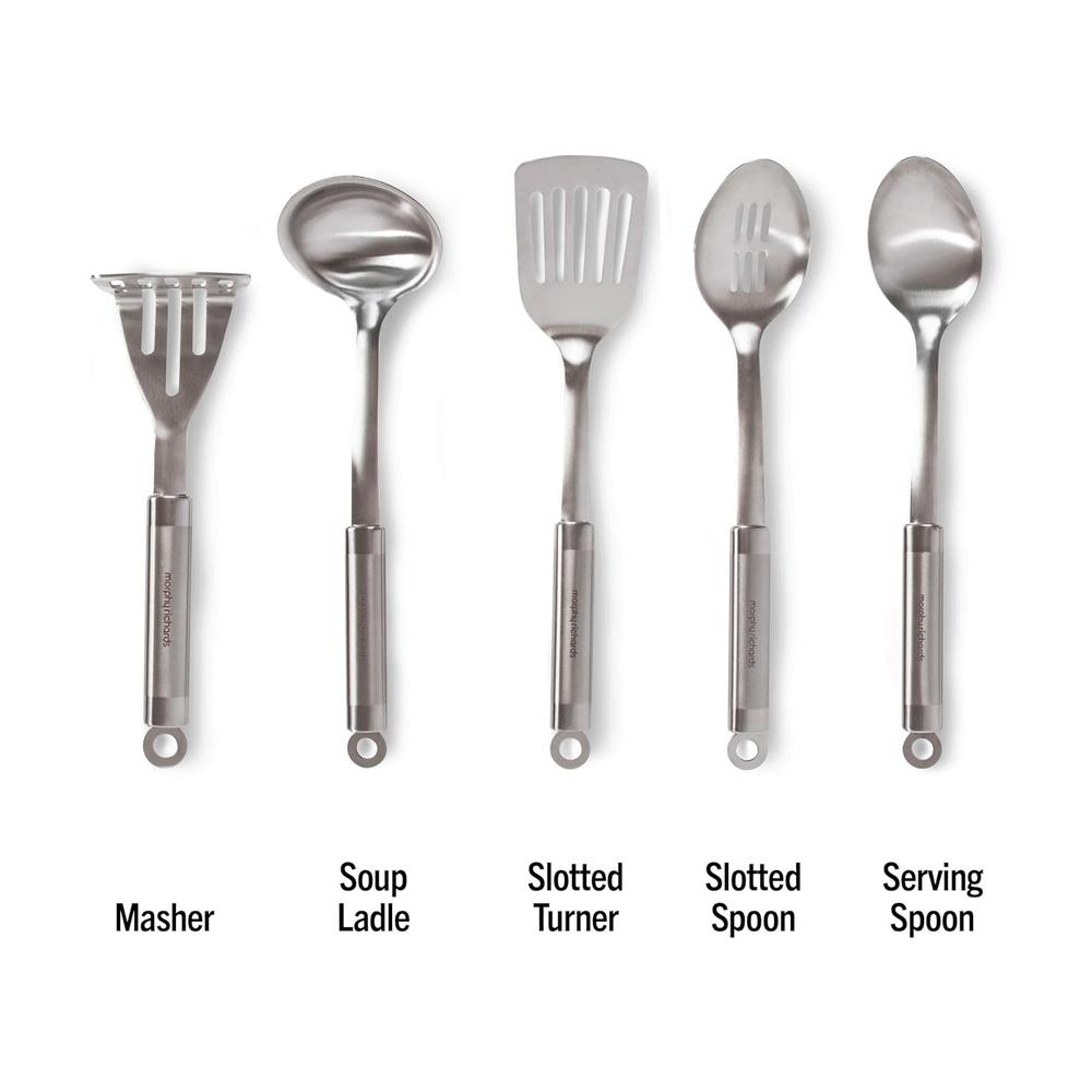 Comprising a turner, slotted spoon, solid spoon, ladle and masher; this 5 Piece Tool Set serves a multitude of functions and offers easy accessibility to utensils at all times.