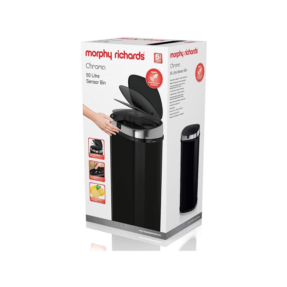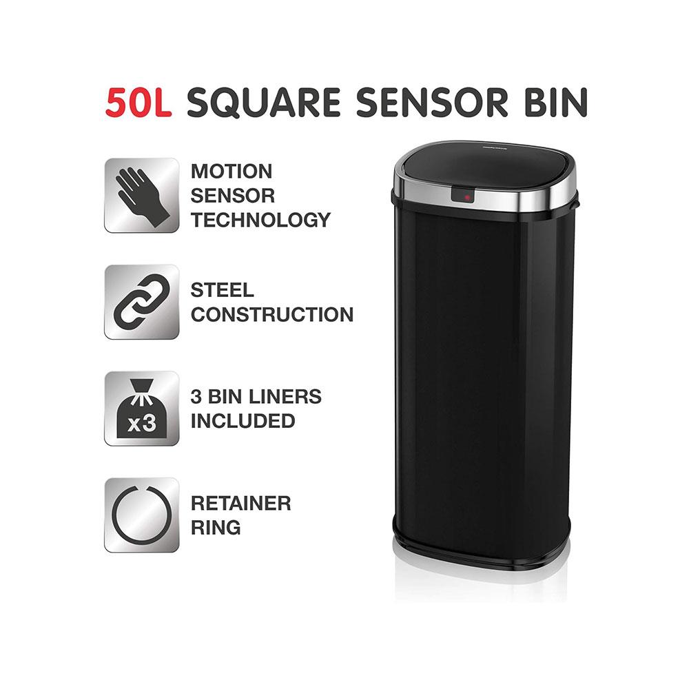 Morphy Richards Chroma Square Sensor Bin With Motion Sensing Technology & 3 Lemon-Scented Bin Liners 50 Litres – Black