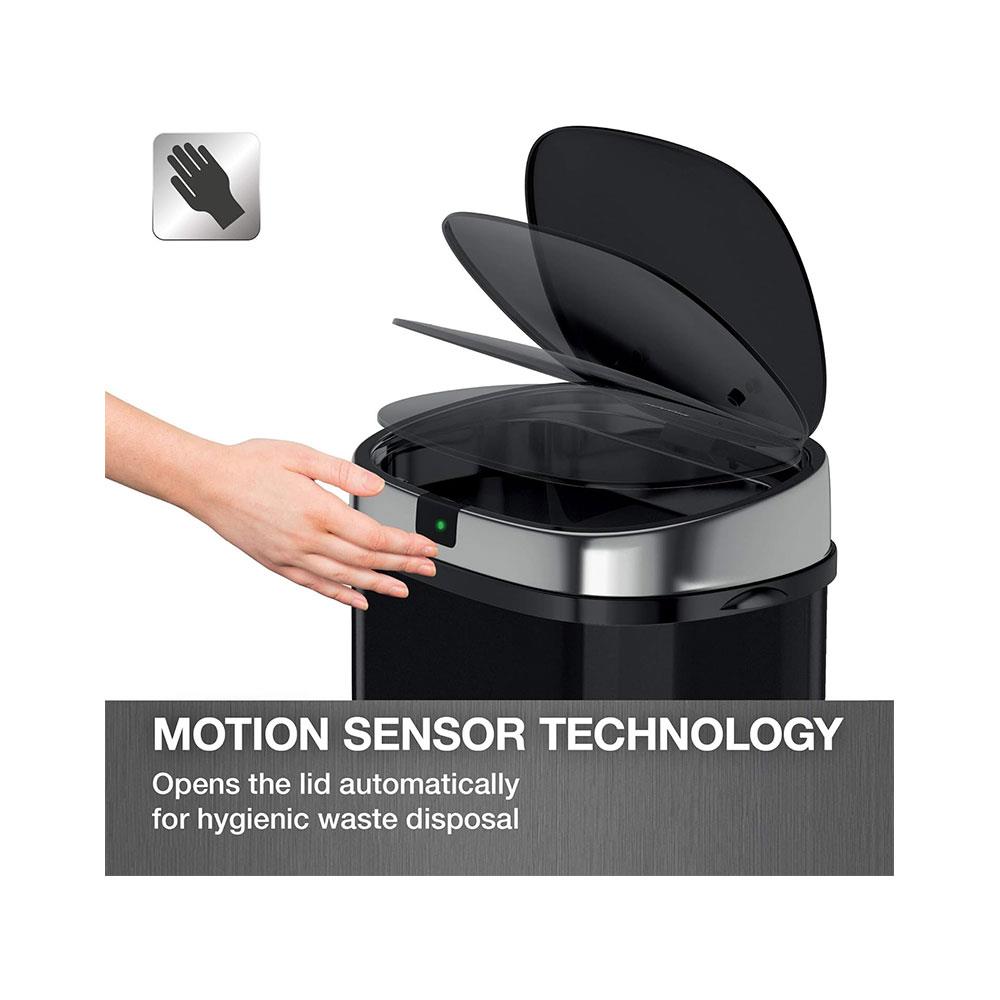 • MOTION SENSOR TECHNOLOGY: The lid opens automatically as you get closer, then closes after 5 seconds of inactivity, for hygienic waste disposal