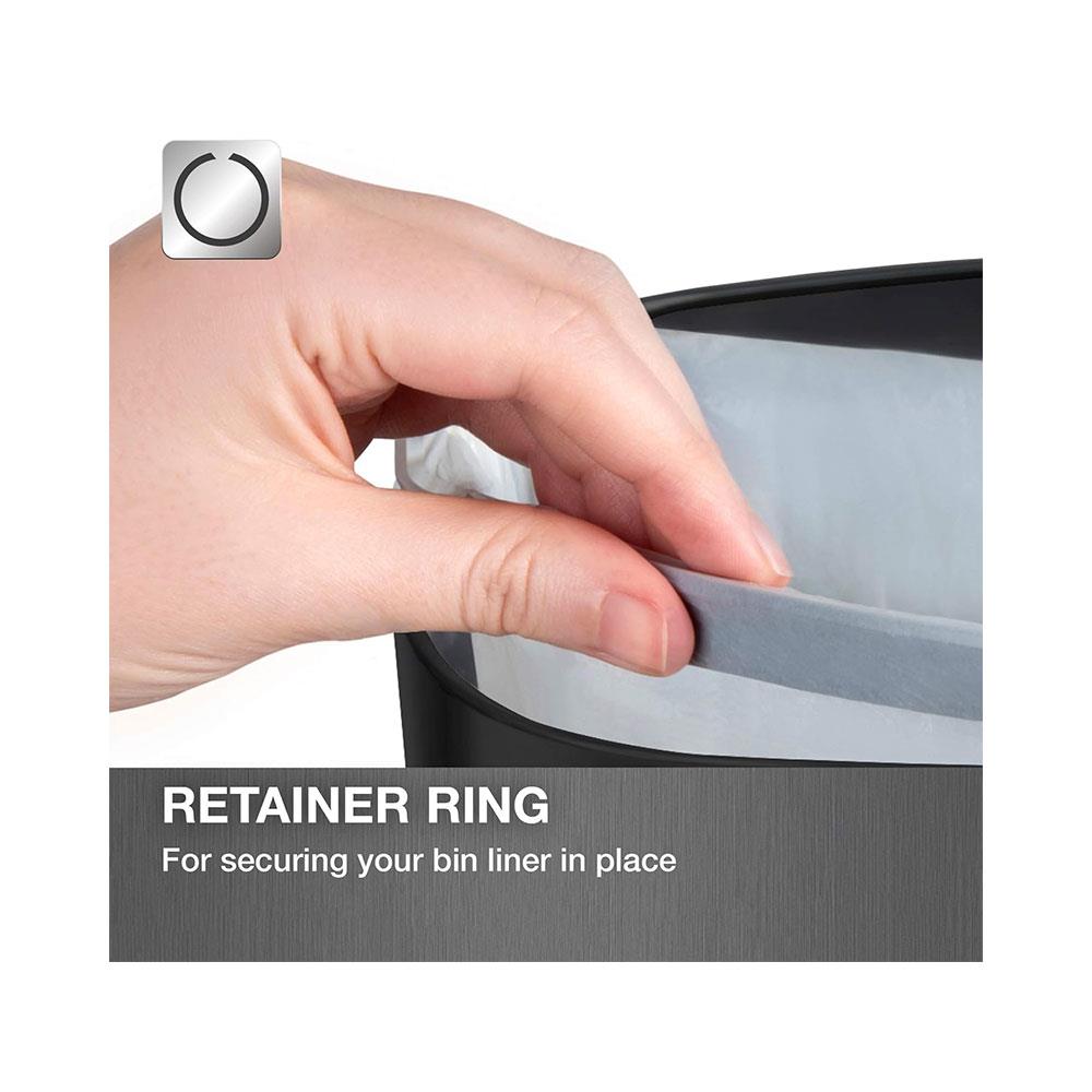 • RETAINER RING: Keep your bin liners securely in place with the retainer ring and avoid it falling from the weight of large amounts of waste