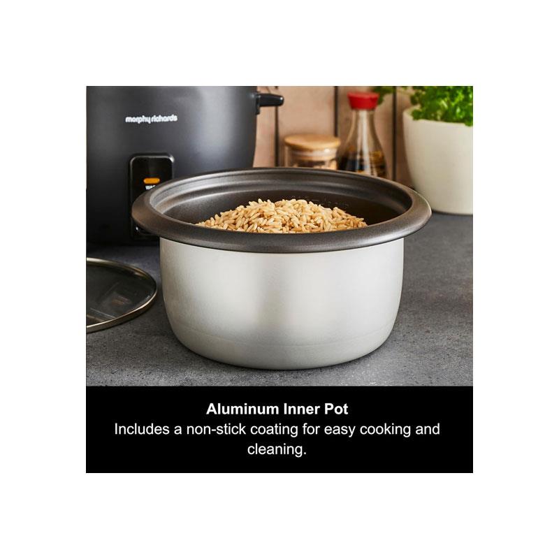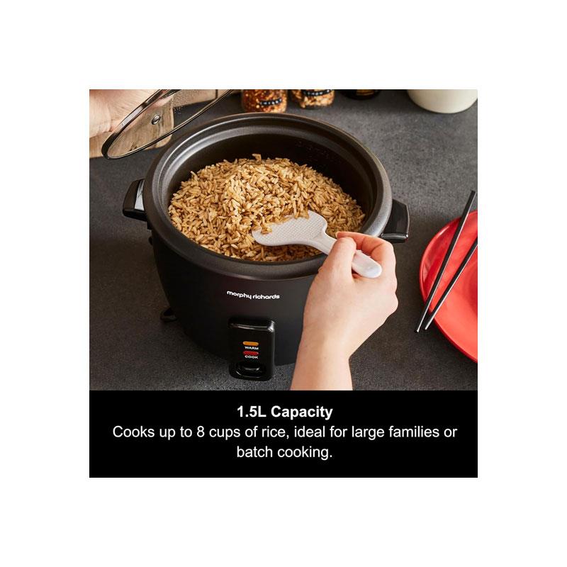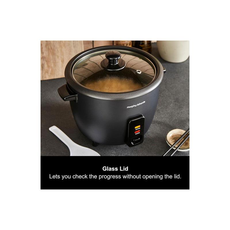 Morphy Richards Rice Cooker And Steamer Automatic Cooking Non-stick Aluminum Inner Pot Glass Lid 500W 8 Cups 1.5 Litre Black