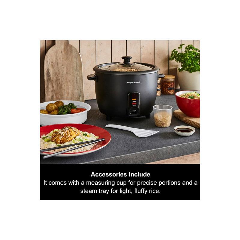 Finished in classic black, this Morphy Richards rice cooker combines practicality, efficiency, and everyday reliability.