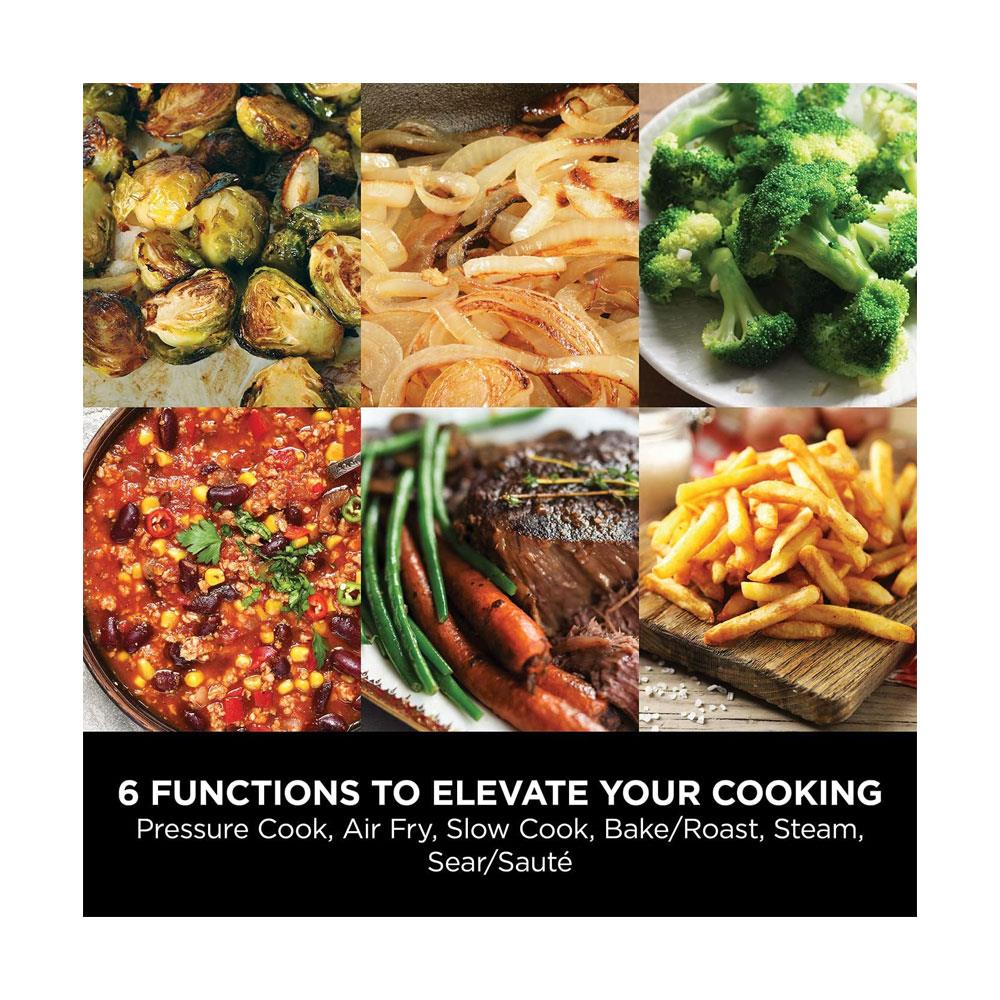 • 6 Cooking Functions : Pressure Cook, Air Fry, Slow Cook, Steam, Bake/Roast, and Sear/Saute for endless meal possibilities.