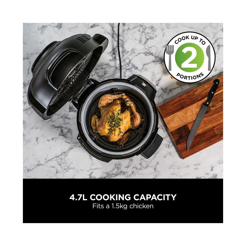 • Compact Design : Perfectly sized for 1-2 servings, this 4.7L capacity cooker fits a 1.5kg chicken and is ideal for smaller kitchens or apartments.