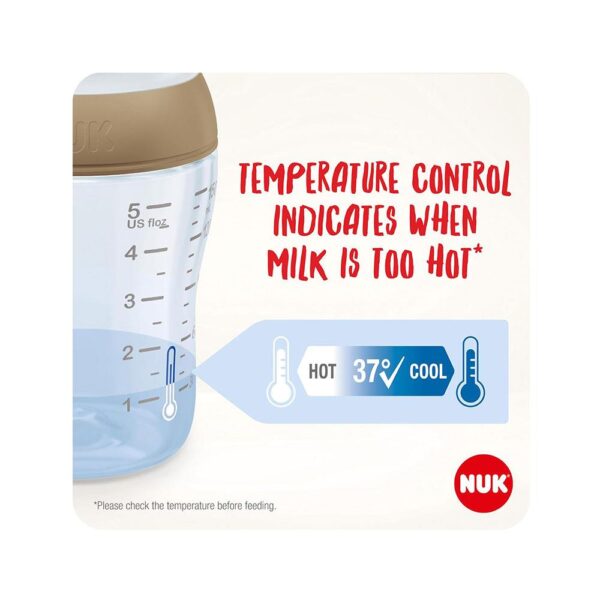 • INNOVATIVE FEATURES: Built-in temperature control indicator shows when milk is too hot***; Anti-Colic vent helps prevent the harmful swallowing of air