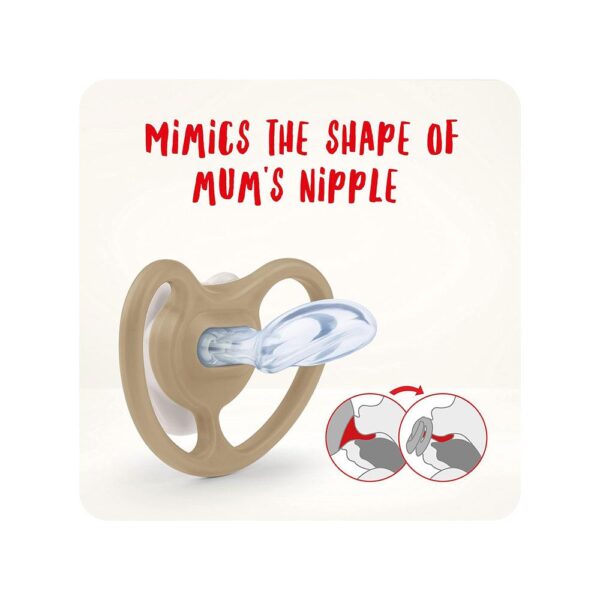 • Improved NUK original shape modelled on a mother’s nipple while breastfeeding for a natural, satisfying feel