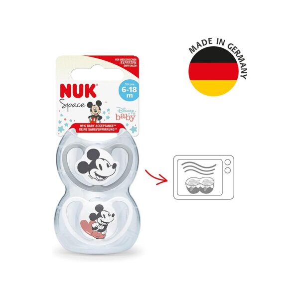 NUK Space Disney Baby Soother Dummy Silicone 6-18 Months 2 Count - Mickey Mouse - Image 3
