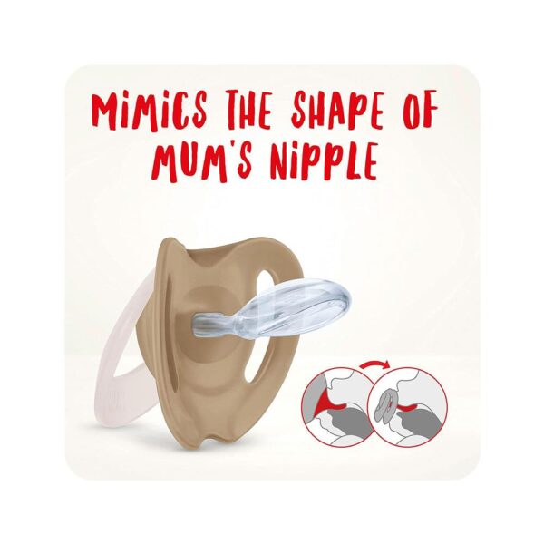 • Original NUK shape is round on the top and flat underneath, leaving room for natural sucking movements