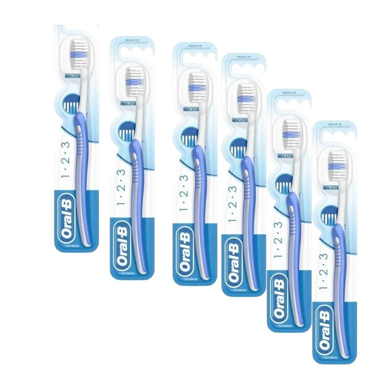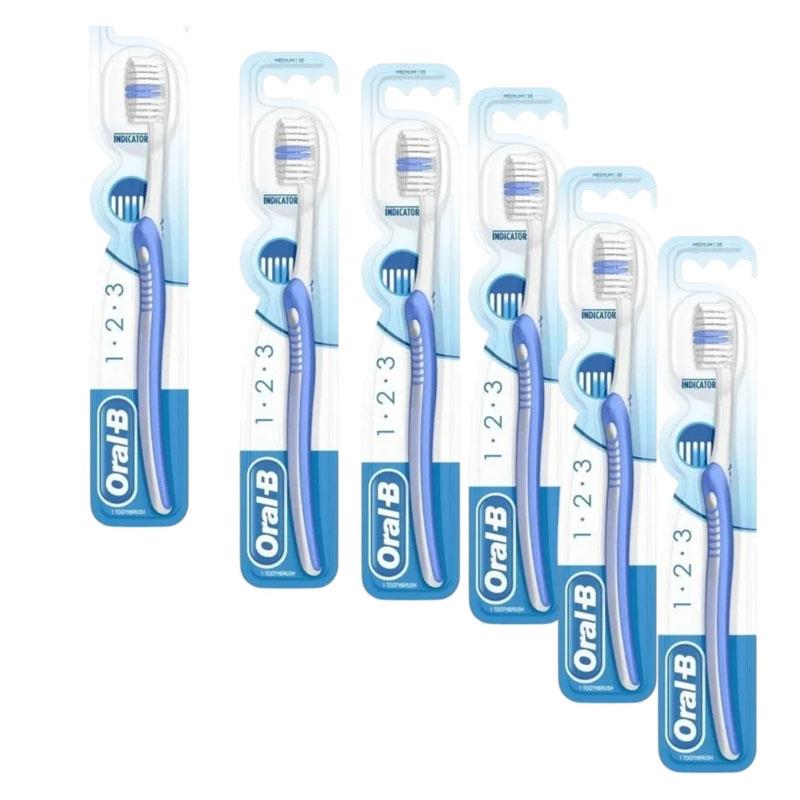 Oral-B 123 Indicator 35 Medium Manual Toothbrush – Pack of 6 (Blue)