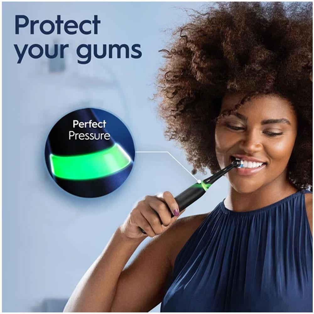 • Smart Pressure Sensor: Protects your gums by alerting you when you’re brushing too hard or too soft, ensuring a safe and effective clean.