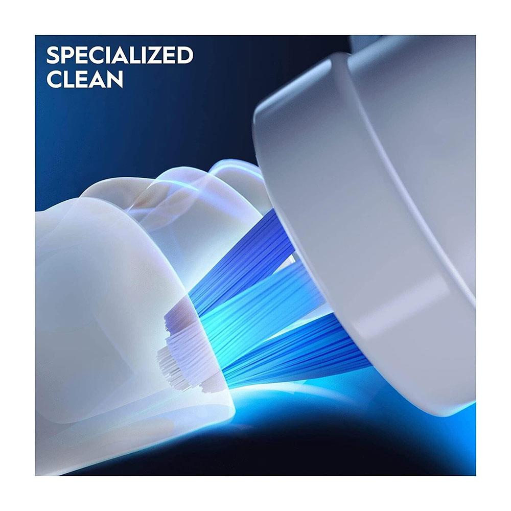 • Oral-B iO Specialized Clean is precisely shaped with angled outer tufts which support the central tuft, to reach and clean hard-to-reach areas