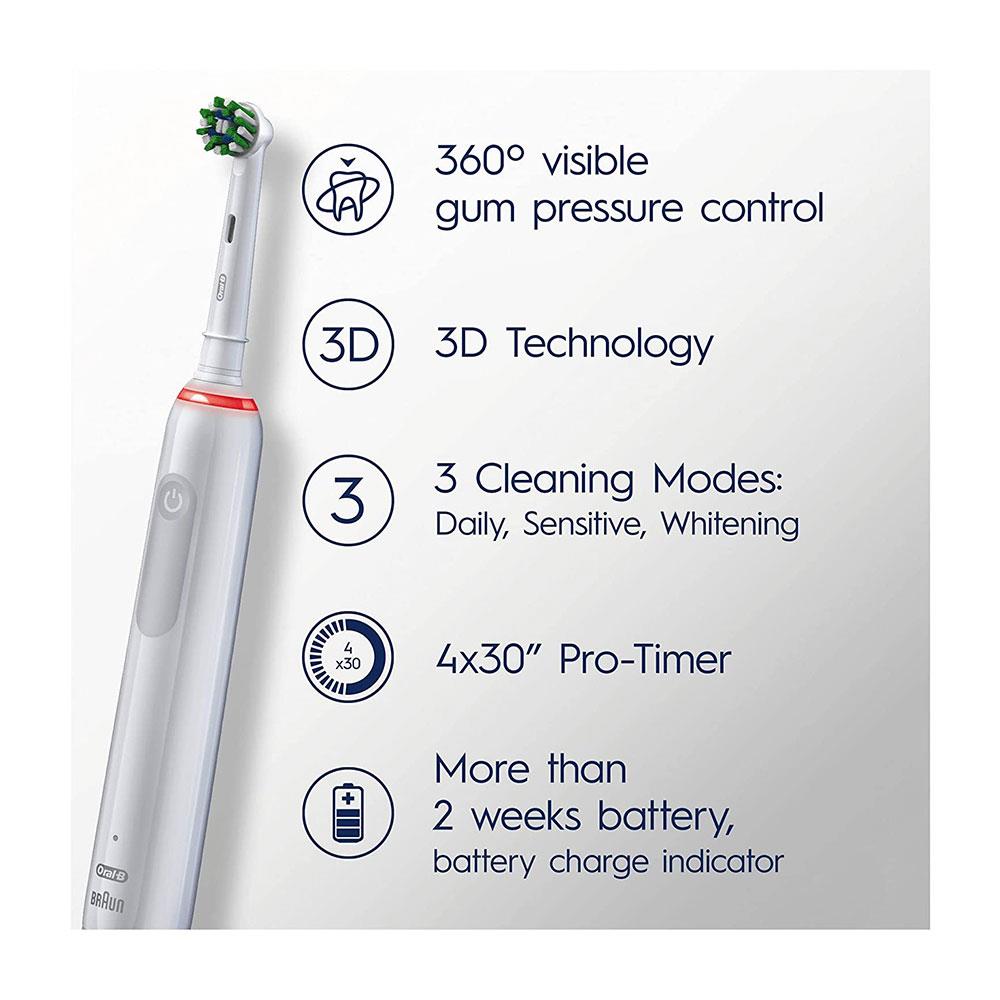 Oral-B Pro 3 3000 Electric Toothbrush With 1 Cross Action Tooth Brush Head - White - Image 3