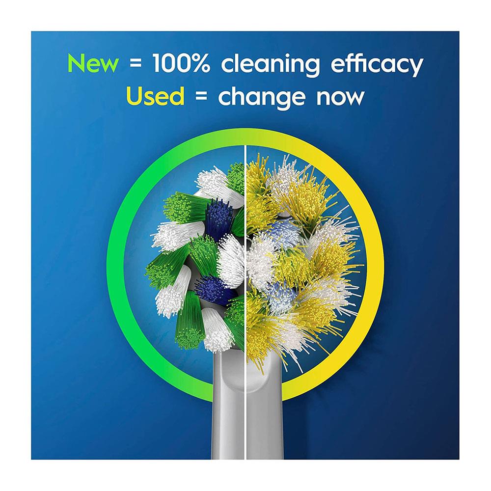 • Based on individual usage, Oral-B’s brush head fades from green to yellow to indicate when it needs to be changed in order to maintain a 100% cleaning effect.
