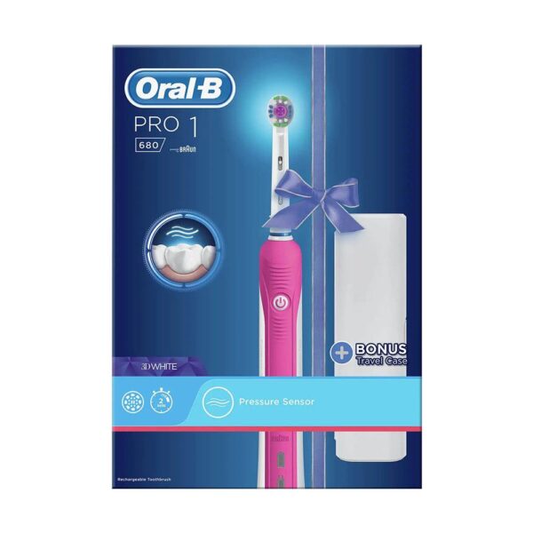 Oral-B Pro 680 3DWhite CrossAction Electric Toothbrush With Travel Case – Pink