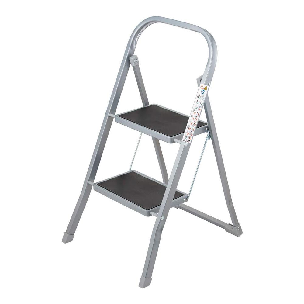 OurHouse SR20055 2-Step Ladder with Rubber Tread and Steel Reach high places and effortlessly finish small DIY projects This two-tier step ladder is strong and lightweight, and it provides height assistance so you can reach higher cabinets, shelves, and cabinet spaces. Perfect for home use, its durable steel construction can hold a maximum weight of 150kg to help tackle light DIY tasks with ease.