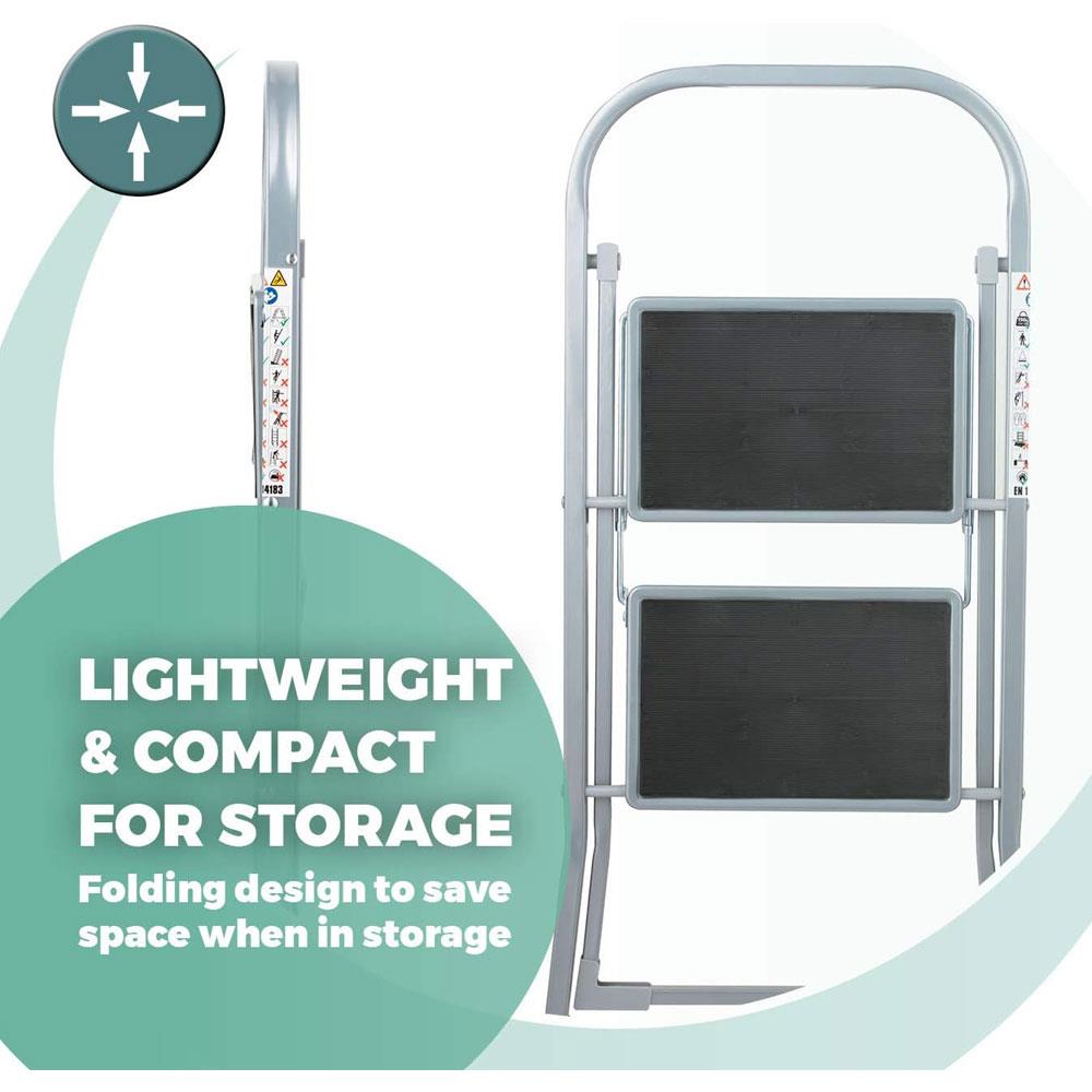 OurHouse 2 Rubber Tread Steel Step Ladder 150kg Maximum Weight Slip-Resistant Feet - Grey - Image 5