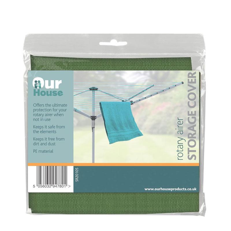 Protect your rotary washing line from bad weather, dirt, and wildlife with the OurHouse Rotary Washing Line Cover. Designed for all OurHouse rotary airer models (SR20103, SR20102, SR20101 – 26m/40m/50m), this heavy-duty cover slips easily over your airer to provide year-round protection and keep it looking like new.