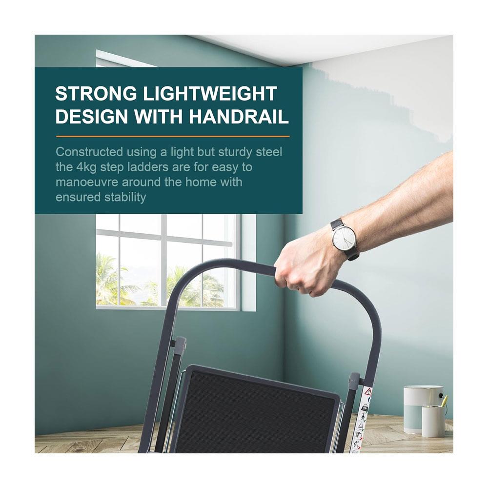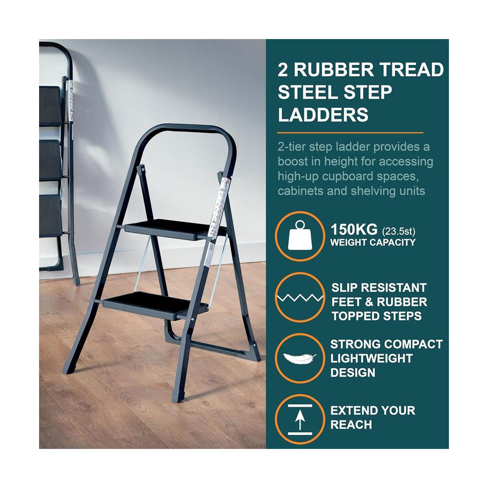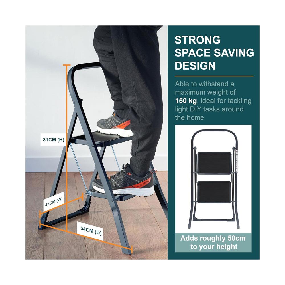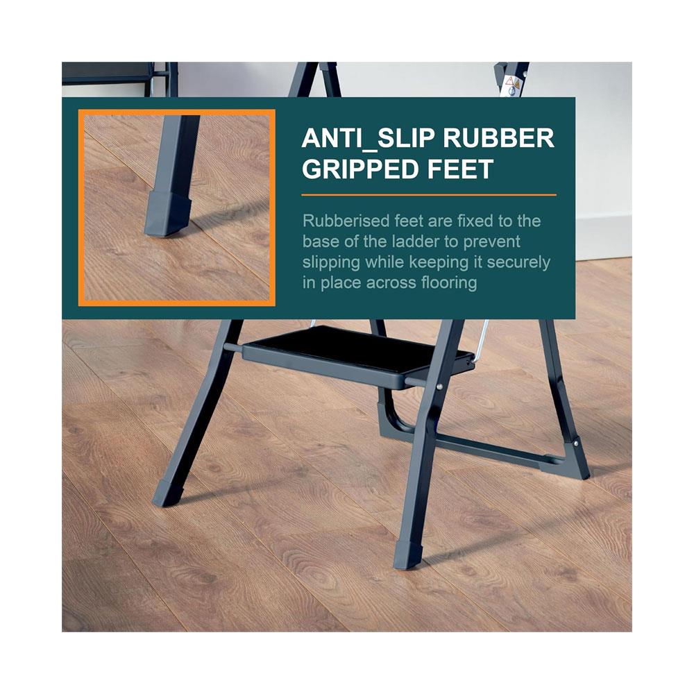 OurHouse Rubber Non-Slip 2-Tread Step Ladder 150kg Max Capacity - Anthracite Grey - Image 9