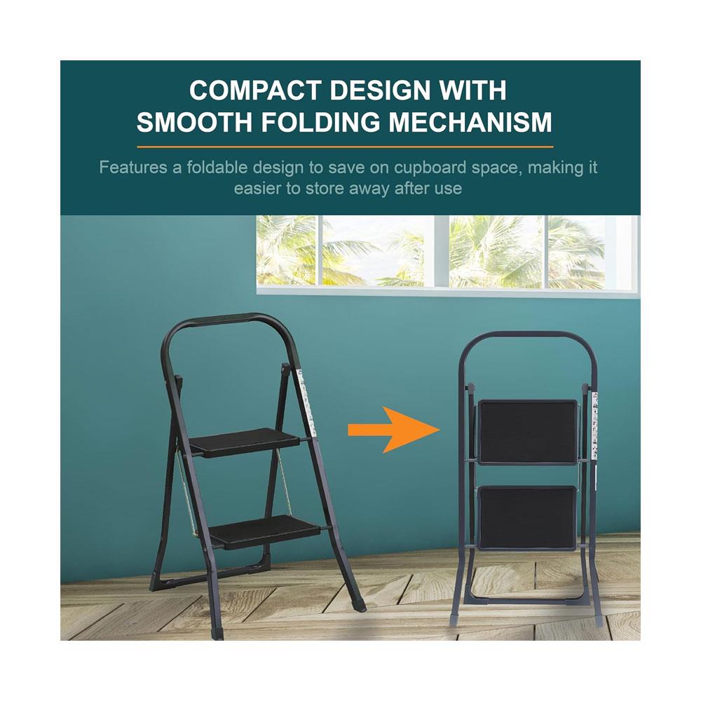 • Compact and Space-Saving: With a slim profile and compact design, the OurHouse step ladder can be easily stored in small spaces, such as closets or garages. Its small footprint makes it an ideal addition to homes with limited storage options.
