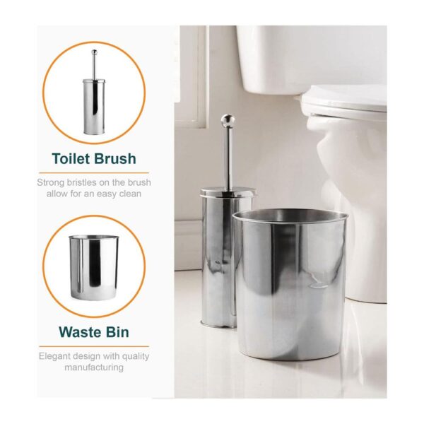 • 2-Piece Set: Includes toilet brush with holder and matching bin