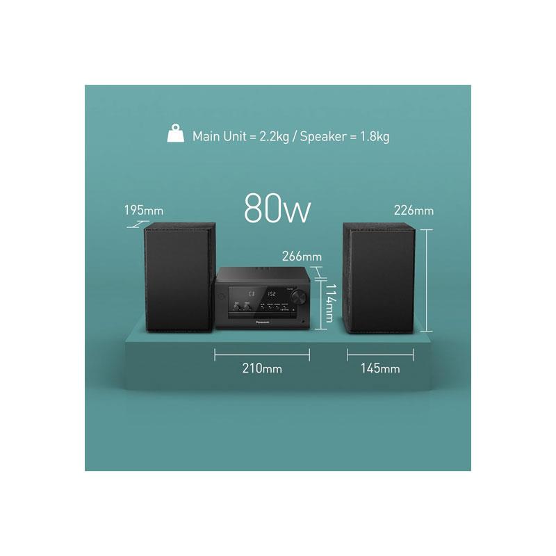 Panasonic 80W Bluetooth Micro Hi-FI CD Compact Stereo System With FM/DAB DAB+ Radio MP3 & CD Player USB AUX-IN Auto Play Black