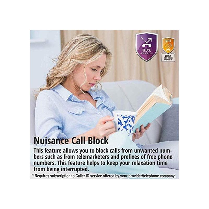 Its advanced nuisance call block function allows you to block specific numbers, number ranges, or calls with no caller ID, giving you greater control and peace of mind. The compact, modern design fits comfortably in any room, while One-Touch Eco Mode helps reduce power consumption. With extra handsets included, you can easily place phones around your home for maximum accessibility.