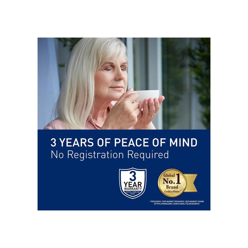 The Panasonic Digital Cordless Answer Phone with Triple Handset is designed for clear communication, everyday convenience and effective call management. Featuring an illuminated 1.6-inch LCD display, hands-free speakerphone and a digital answering system with up to 18 minutes of recording time, this phone offers reliable performance for home or office use.