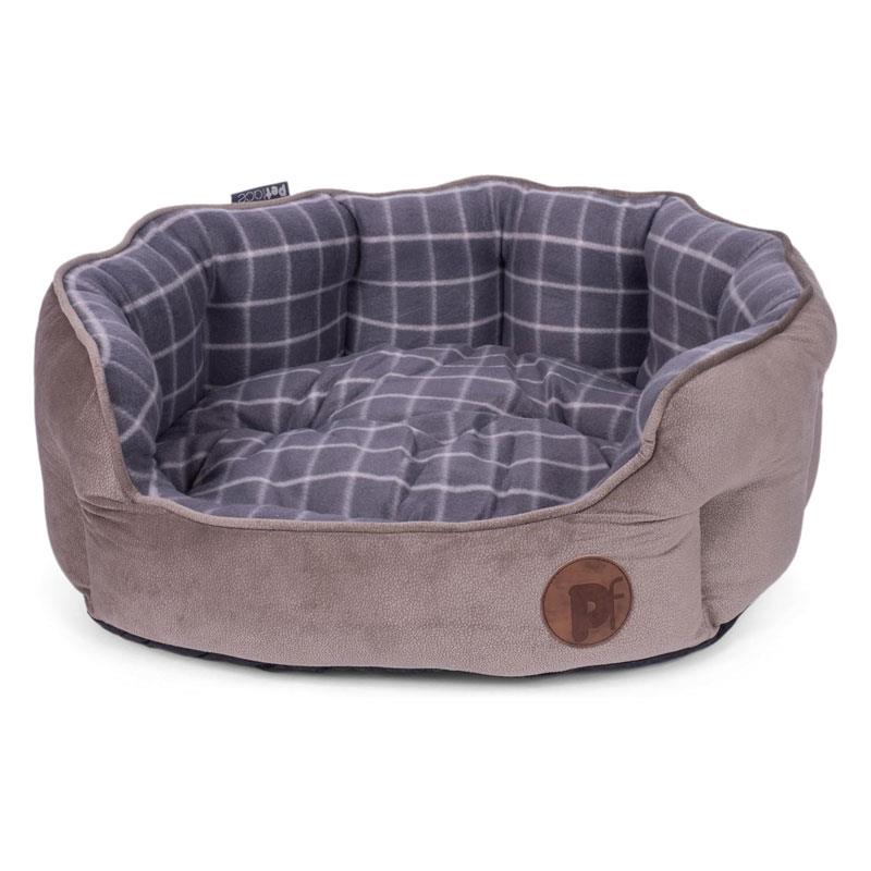 Petface Check And Bamboo Oval Dog Bed Large Grey