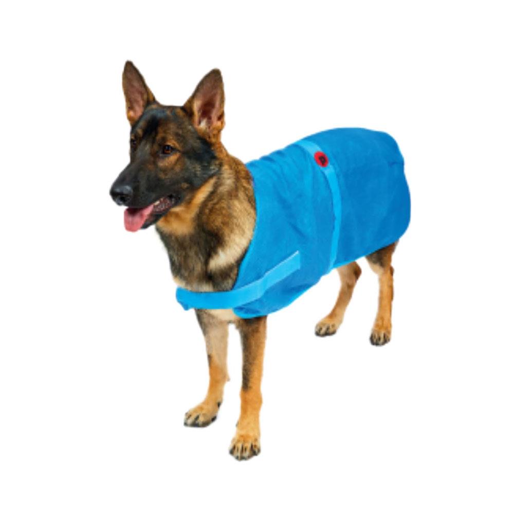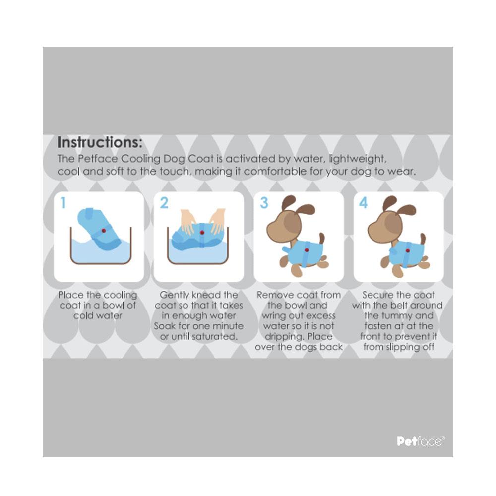 Keep your best friend cool in those hot summer months with the stylish Petface cooling dog coat. The Petface cooling dog coat is activated by water – lightweight, cool and soft to the touch, making it comfortable for your dog to wear. This Cooling Coat has been designed to help cool dogs and puppies in hot weather or when they have a temperature. The coats are reusable and can be dried off when not in use. Length: 60 cm. Available in blue colour.