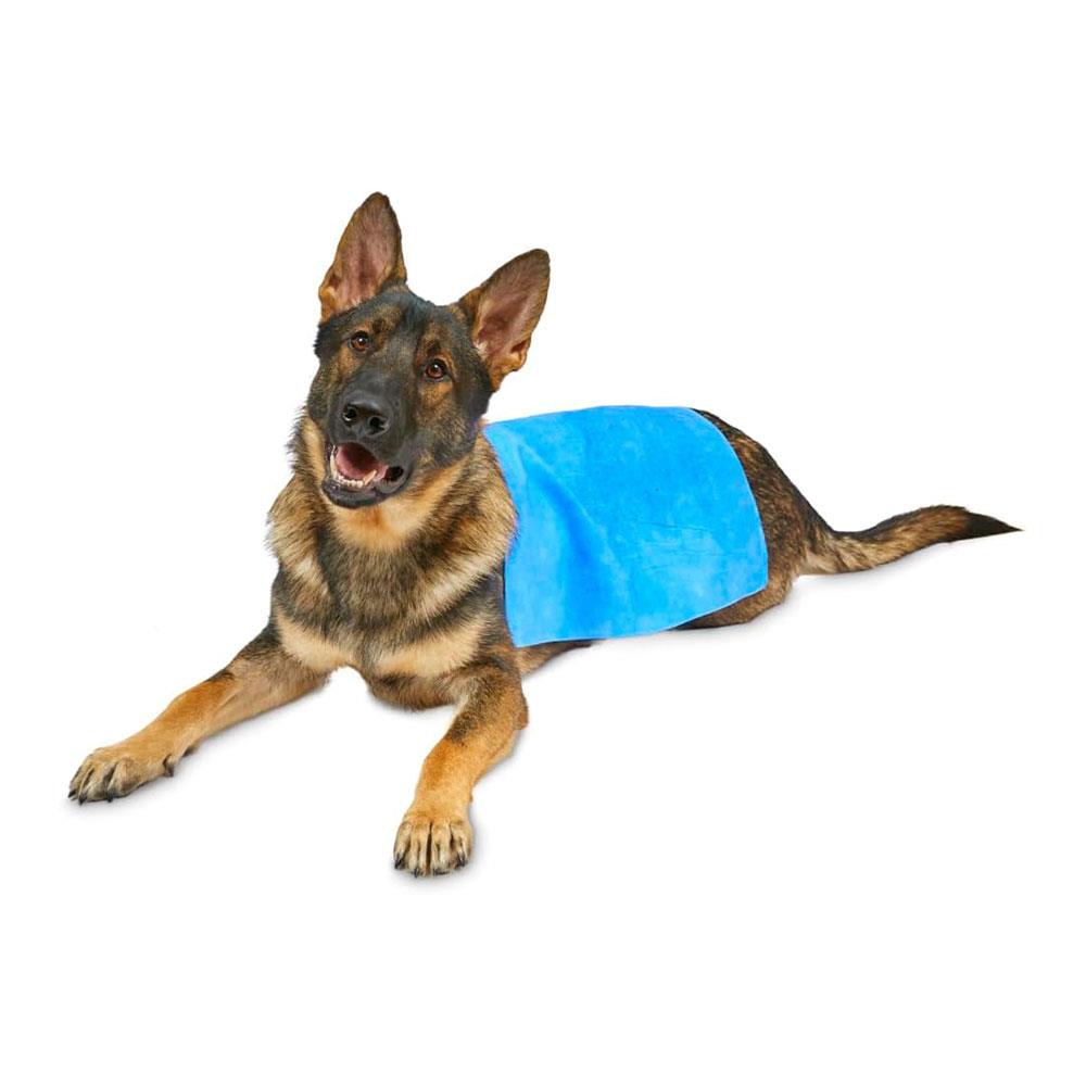 • Activated by water, this stylish blue lightweight coat is comfortable to lay on and helps keep your pet cool.