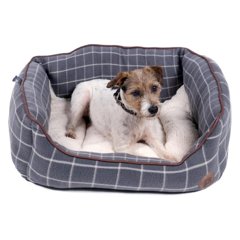 Petface Window Pane Check Square Dog Bed Medium Grey