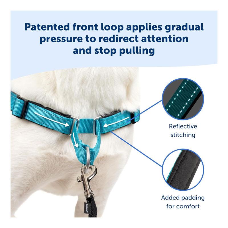 The patented front-chest leash attachment and Martingale loop gently steer your dog to your side, reducing pulling without choking or discomfort.