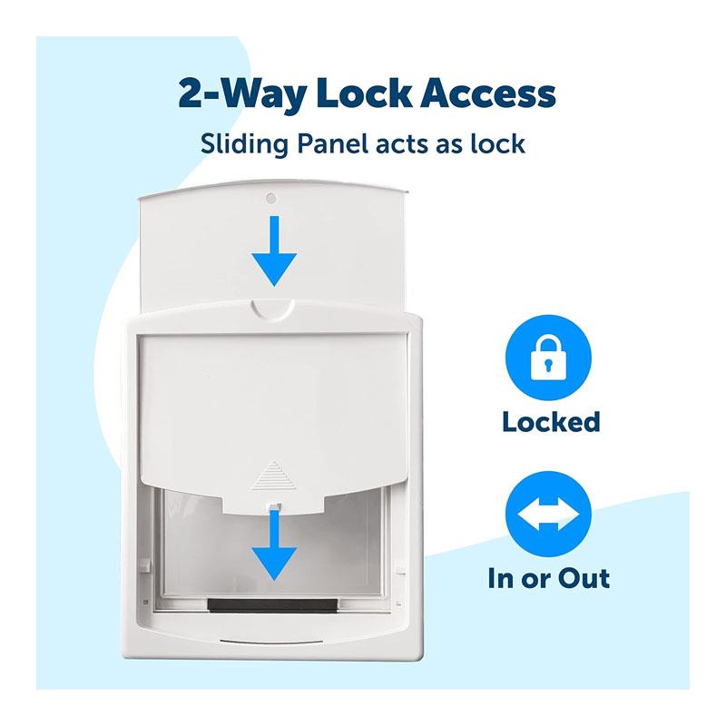 Crafted with durable plastic and finished in crisp white, it seamlessly blends into most doors and walls, giving your home a clean, modern look while enhancing your pet’s lifestyle.