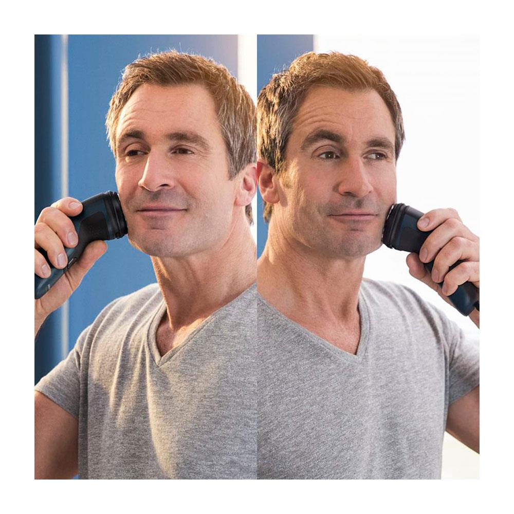 • The flexible 4D heads follow the contours of the face for a close shave. Enjoy a close and comfortable shave thanks to 4-way shaving heads. The head adapts to the curves of the face, ensuring gentle skin contact without much pressure.