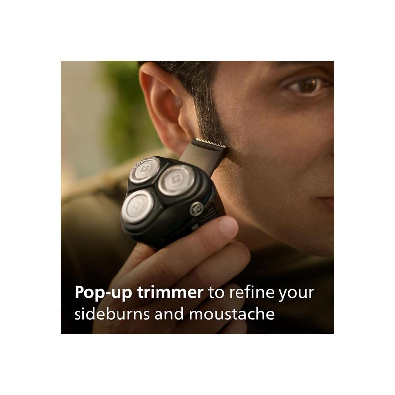 Enjoy the freedom of wet or dry shaving — use with gel or foam in the shower, or go for a quick dry shave anytime. The built-in pop-up trimmer helps you define moustaches, sideburns, and edges with precision.