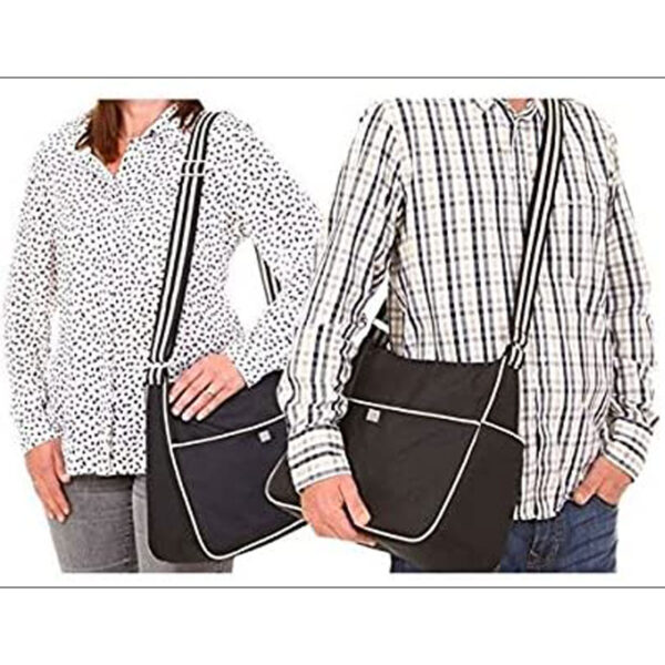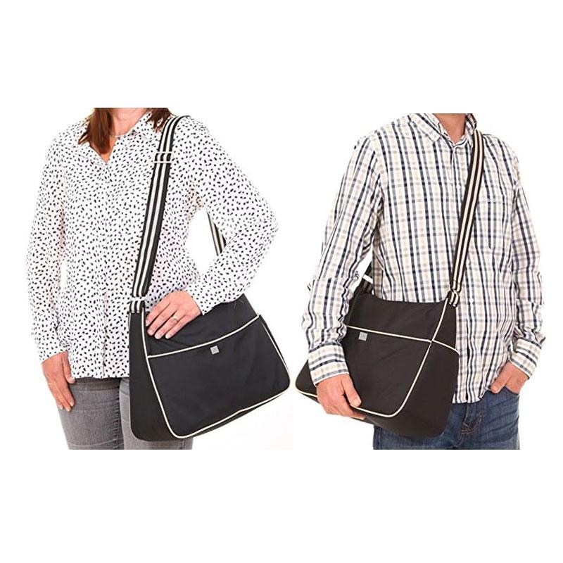 Our classic styled Unisex Changing Bag offers parents a well made bag with chunky zips, plenty of pockets, a changing mat, bottle insulator and messy bag. It’s stylish, with a gently curving top, black fabric, contrasting piping, and feature silver details. It has been designed to be a baby changing bag for Dads just as well as Mums, as we know that parents want just one changing bag for their baby and this one works for everyone. The unisex changing bag dimensions are 30x15x40cms which is optimum size for holding all the necessary equipment, without being too big or bulky. It also features a sturdy wide base which means the bag can stand up on its own, which is vital for those quick out of the blue changes.