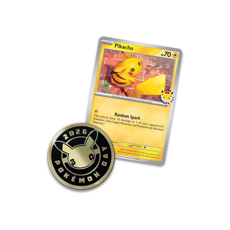 - Exclusive Pikachu Promo Card – Includes 1 foil Pikachu card with Pokemon Day anniversary stamp.