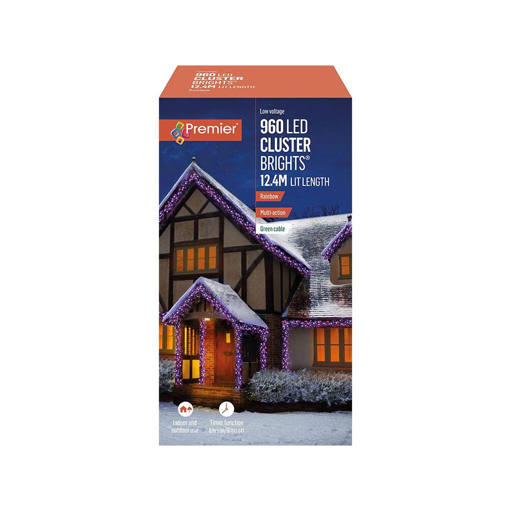 Premier Christmas 960 Multi Action LED Clusters Lights With Timer – Rainbow