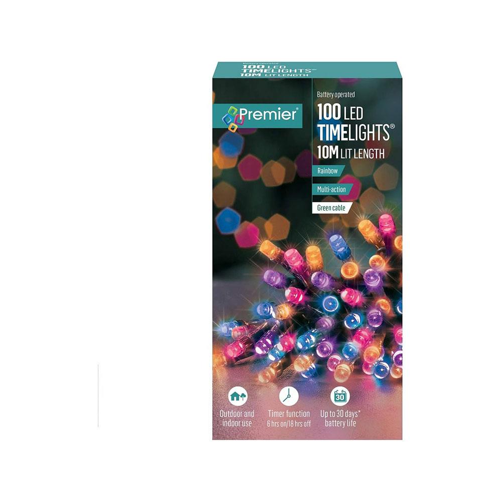 Premier Christmas Multi Action Battery Operated 100 LEDs Lights With Timer – Rainbow
