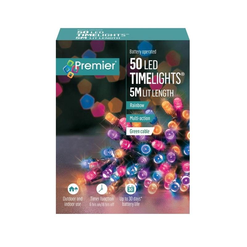 Premier Christmas Multi Action Battery Operated 50 LEDs Lights With Timer – Rainbow