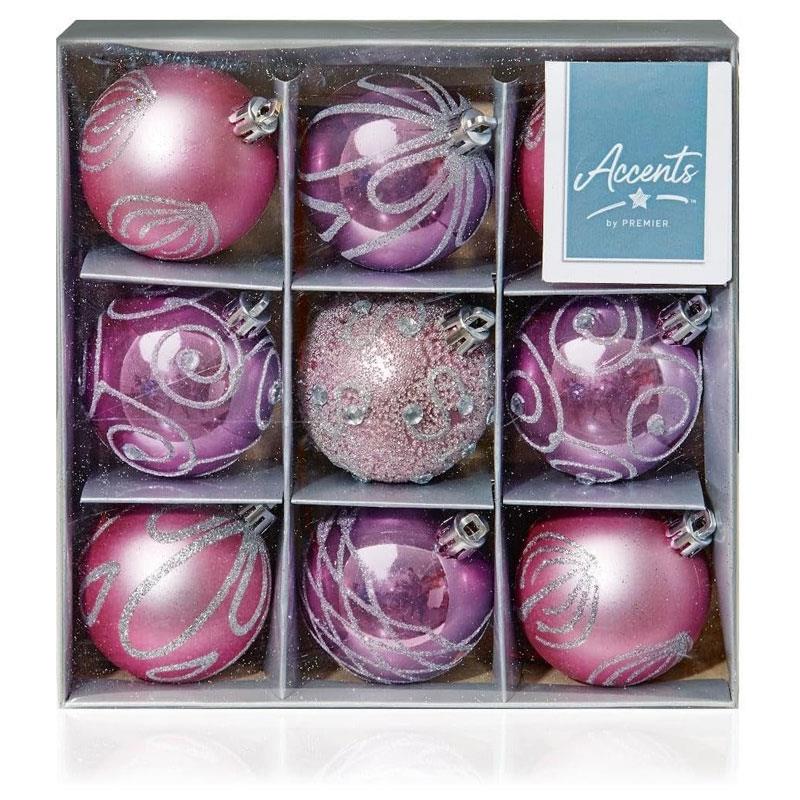 Premier Shatterproof Christmas Tree Baubles 60mm Set of 9 – Pink