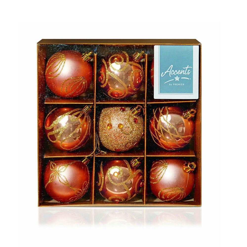 Premier Shatterproof Christmas Tree Baubles 60mm Set of 9 – Rose Gold