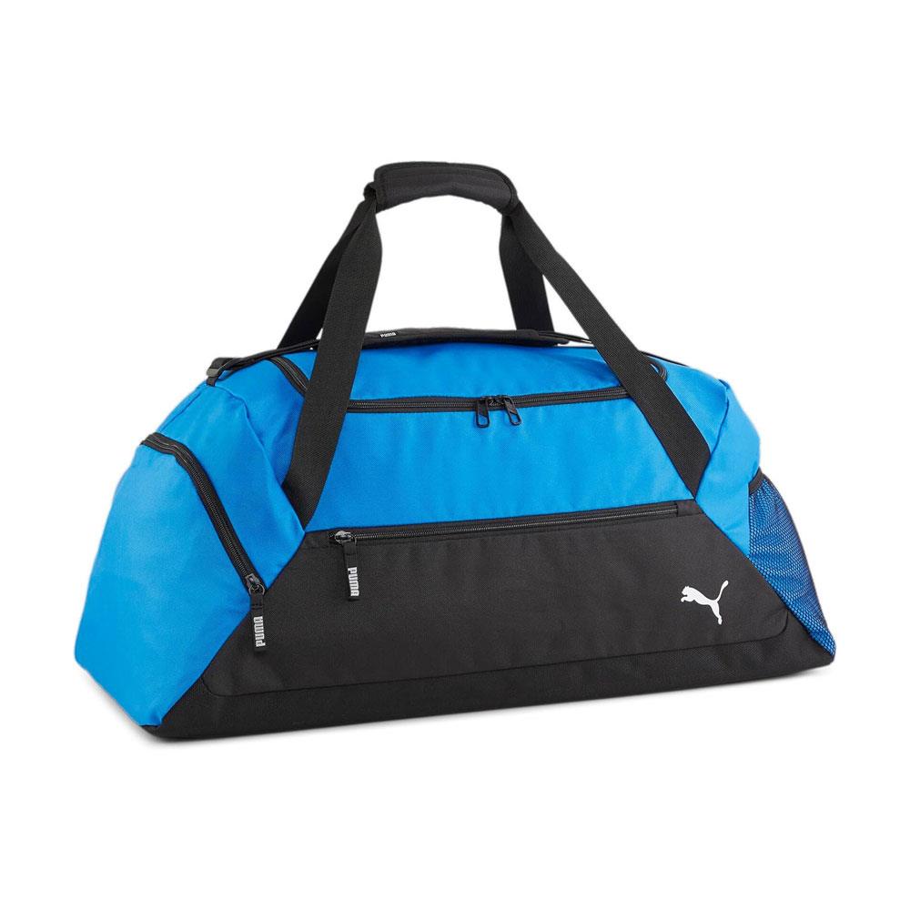 The Puma Team Goal Teambag Medium in Blue/Black is a versatile sports duffel bag designed to meet all your athletic and travel needs. Crafted from durable 600D polyester, it ensures longevity and resilience.